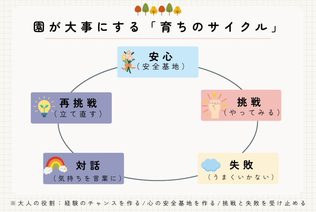 安心 → 挑戦 → 失敗 → 対話 → 再挑戦